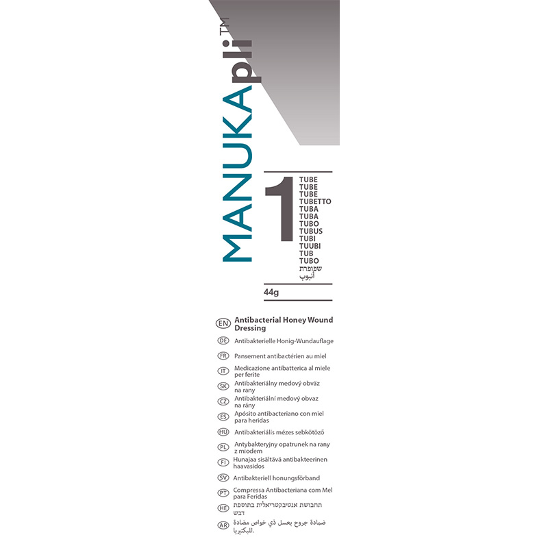 MANUKApli haavageeli on 100 % manukahunajaa tuubiapplikaattorissa. Geeliä on helppo lisätä syville ja onkalohaavoille. Hunajageeliä ei tarvitse poistaa haavalta, sillä puhdas hunaja imeytyy turvallisesti kudoksiin. Laita haavanpohjalle aina 1-2 mm kerros hunajaa, jonka päälle suositellaan käytettäväksi MANUKAtex- tai MANUKAhd-sidoksia, haavaerityksestä riippuen. Tuubeissa on uudelleen suljettava korkki.